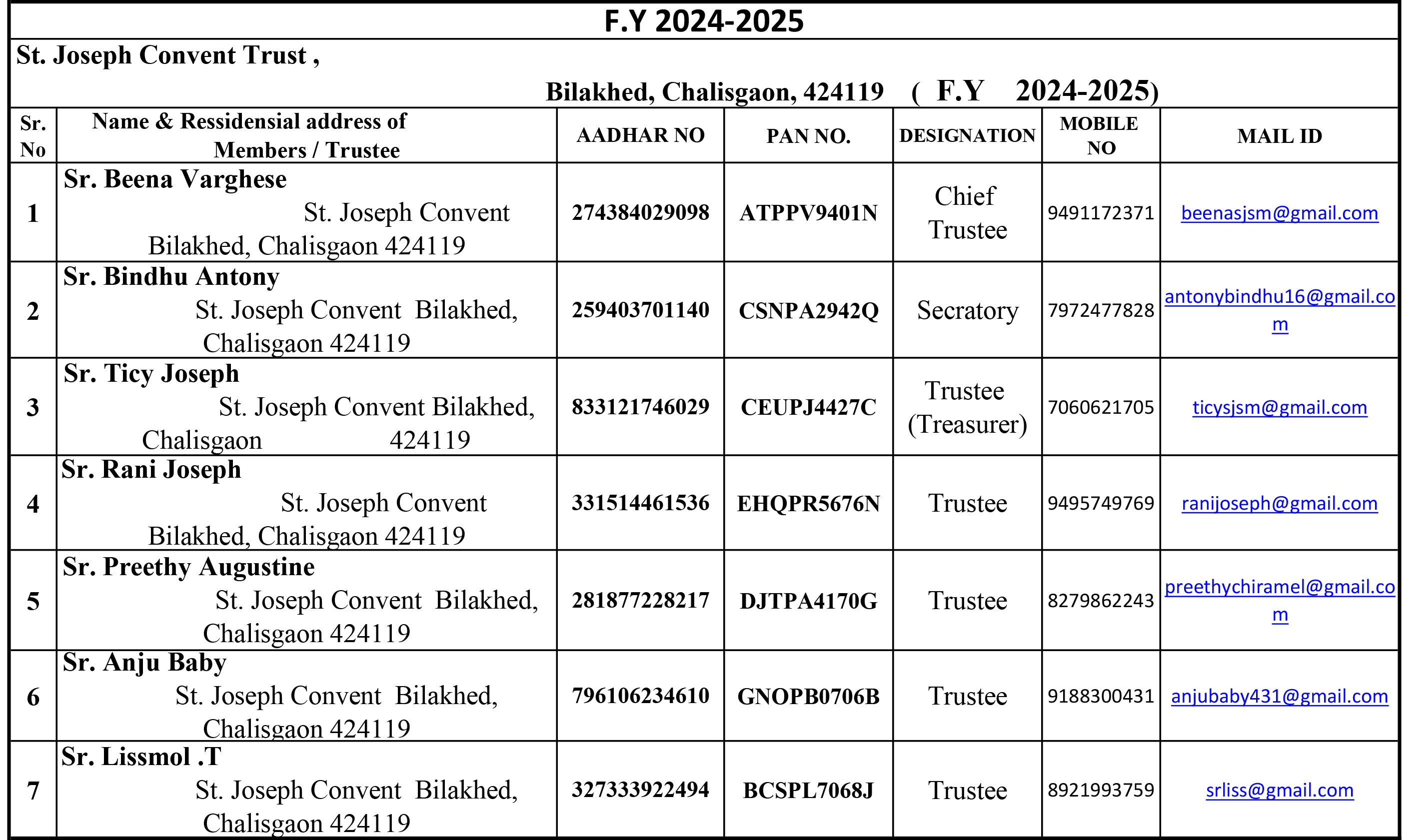 | 5 | PRINCIPAL NAME | Sr. Anne Maria Thomas |